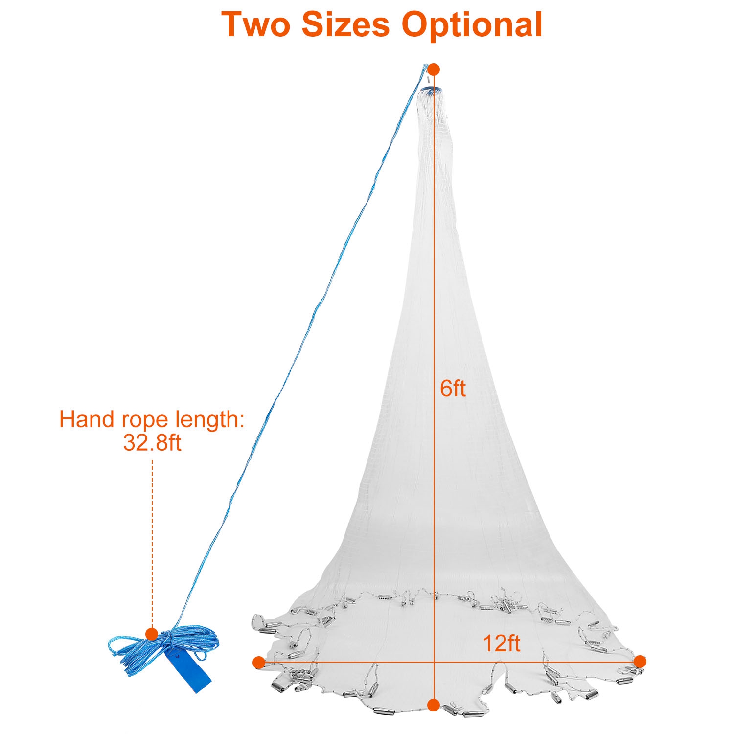 • 3/8in Mesh Cast Net:The 3/8in mesh is sufficient to catch various species with no escape, such as pike, carp, and trout. Catch a large number of various fish with each net that you cast, easy and funny.