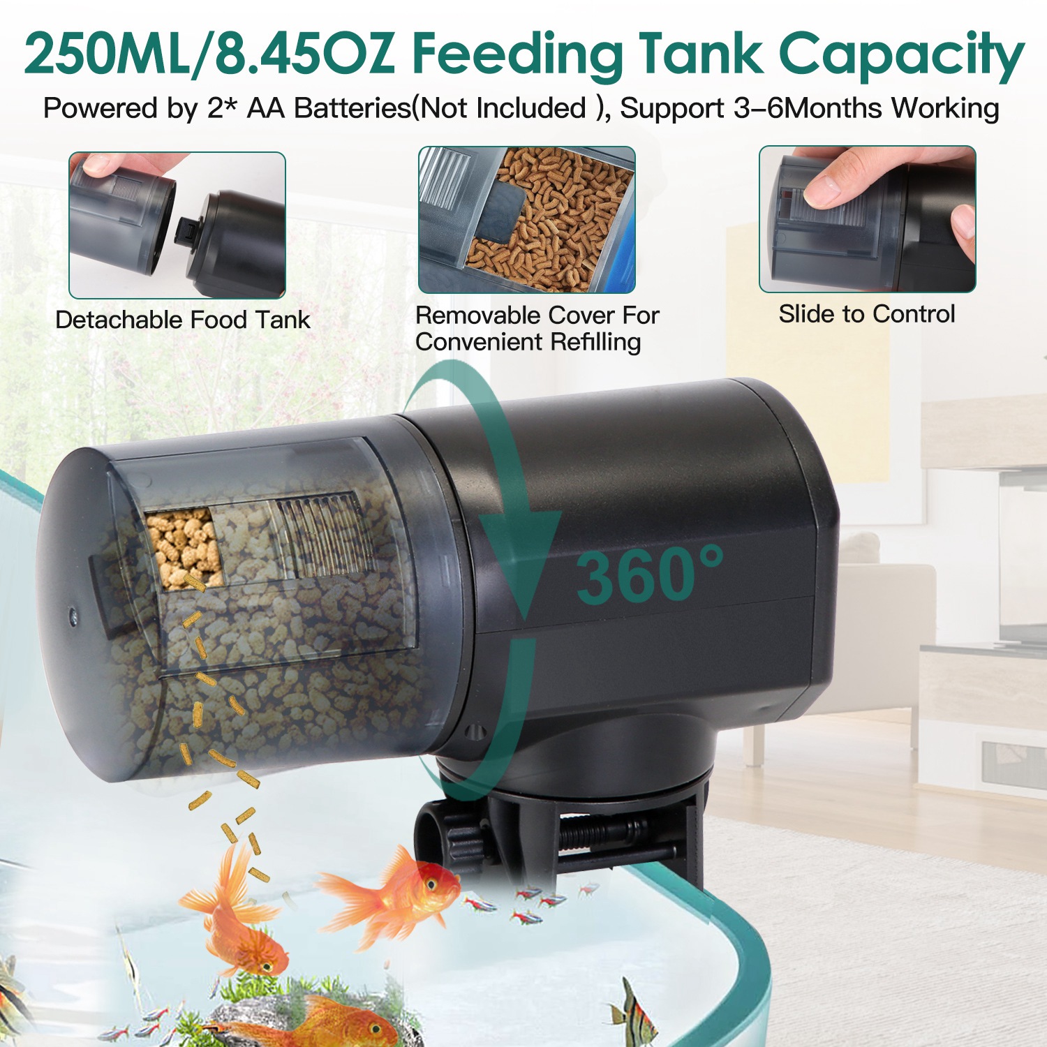 Home > Automatic Fish Feeder 8.45OZ Capacity Electric Fish Food Dispenser for Fish Tank Aquarium Moisture-Proof Fish Feed Timer with 4 Programmable Modes Adj