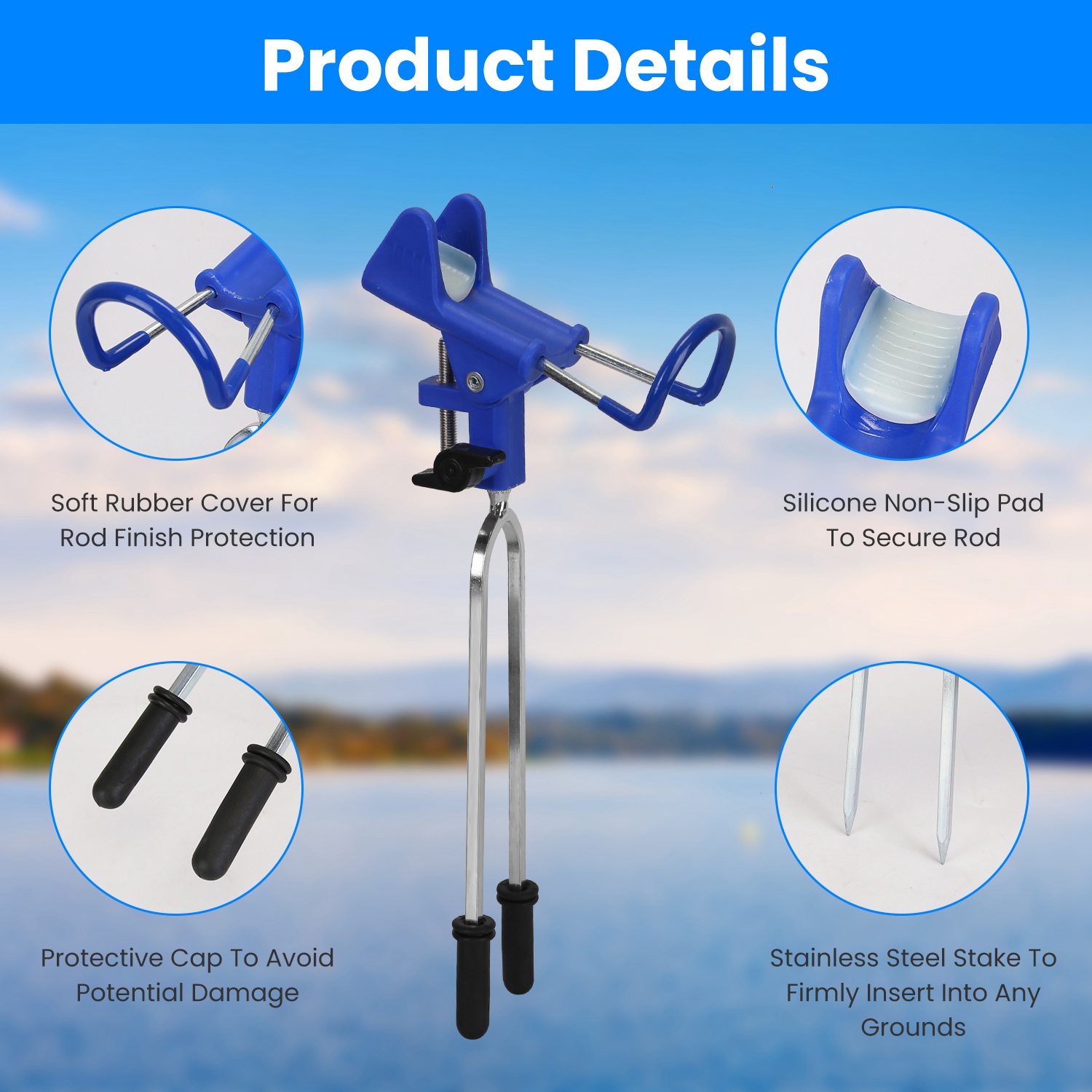 • Rustproof Stainless Steel Stake: Made of premium stainless steel, rustproof, high-strength, sturdy and durable, the strong and sharp stake can deeply insert into mud, sand, soil, rock cracks or other grounds, ensuring steadily and securely standing. Additionally, the rubber cap can be used to cover the sharp end to prevent accidently damage to your fishing equipment.