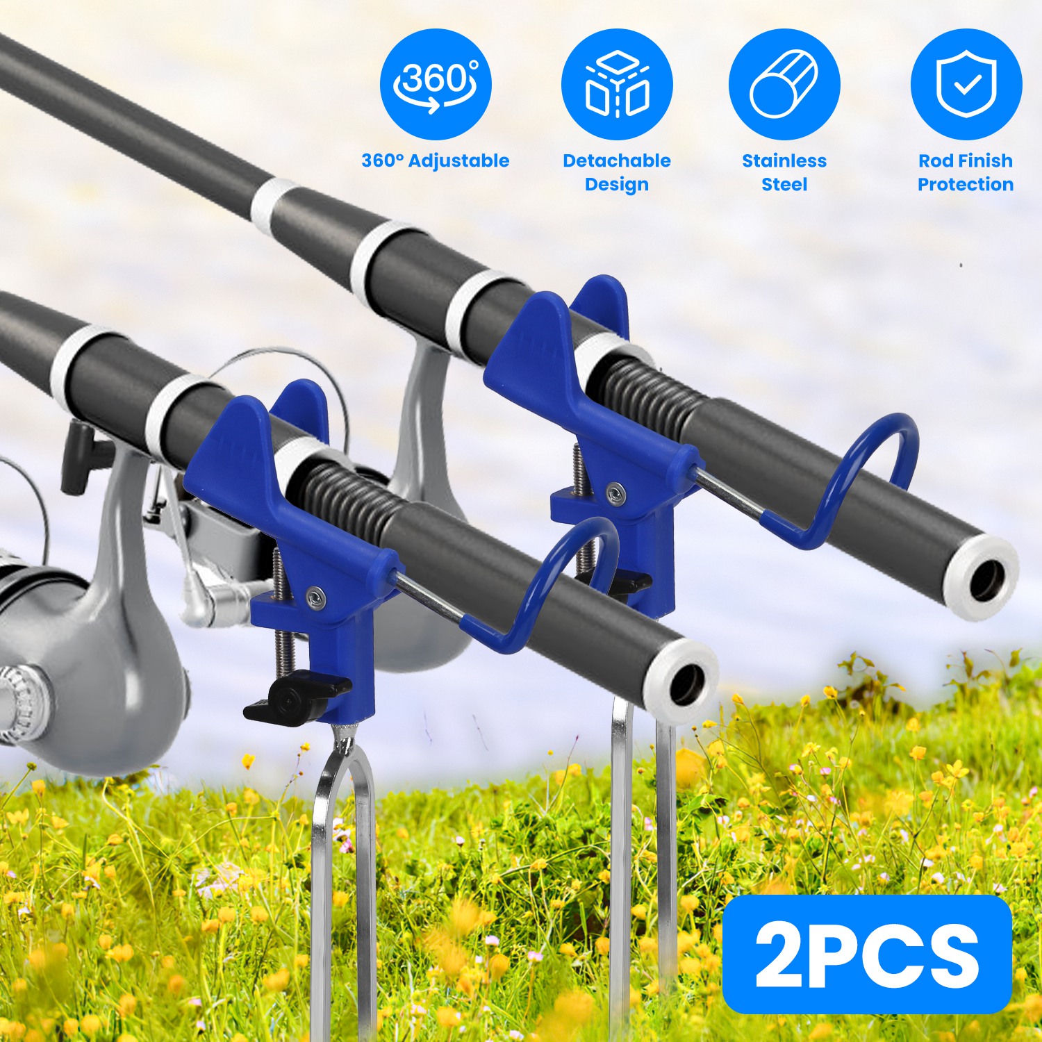 Home > 2Pcs Fishing Rod Holders For Bank Fishing 360° Omni-Directional Stainless Steel Detachable Fishing Pole Holders for Ground Beach Sand Stand Summer Fis